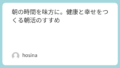 生活習慣 朝の時間を味方に。健康と幸せをつくる朝活のすすめ 仕事や家事、育児に追われて、気づけば夜。「今日も自分の時間がなかったな…」と感じることはありませんか?そんな忙しい毎日を過ごす女性にこそおすすめしたいのが“朝活”です。朝は1日の中で最も頭も心もクリアな時間。ほんの10分早く起きて、軽くスト... 2025.10.08 生活習慣