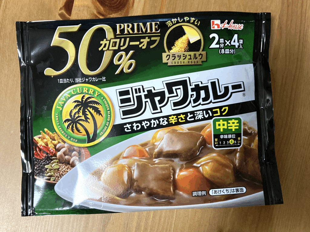 解決策:ジャワカレー“カロリー50%オフ”を使う